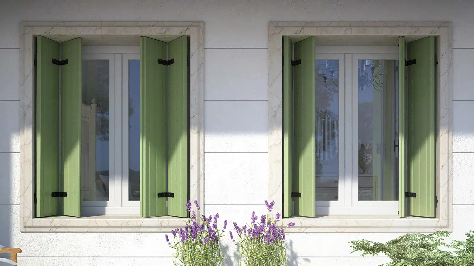 Gli scuri sono la classica soluzione oscurante usata da secoli nel bacino del Mediterraneo e sono realizzati con eleganti doghe verticali o orizzontali da 88 mm, che rispettano la tradizione architettonica italiana.