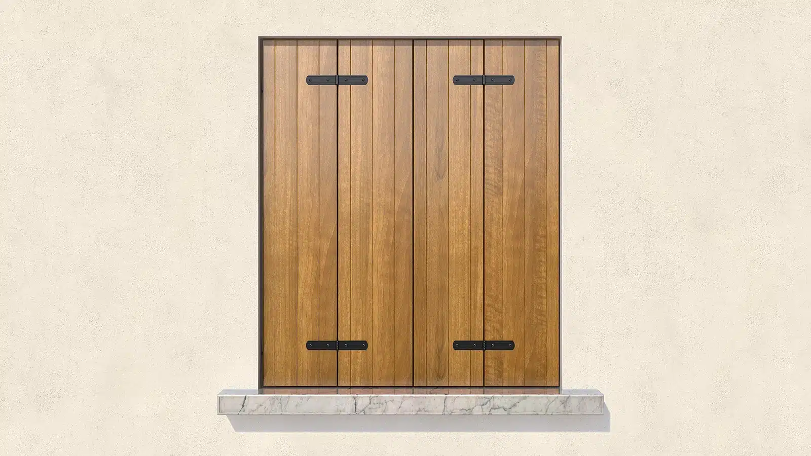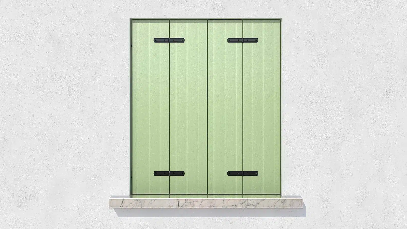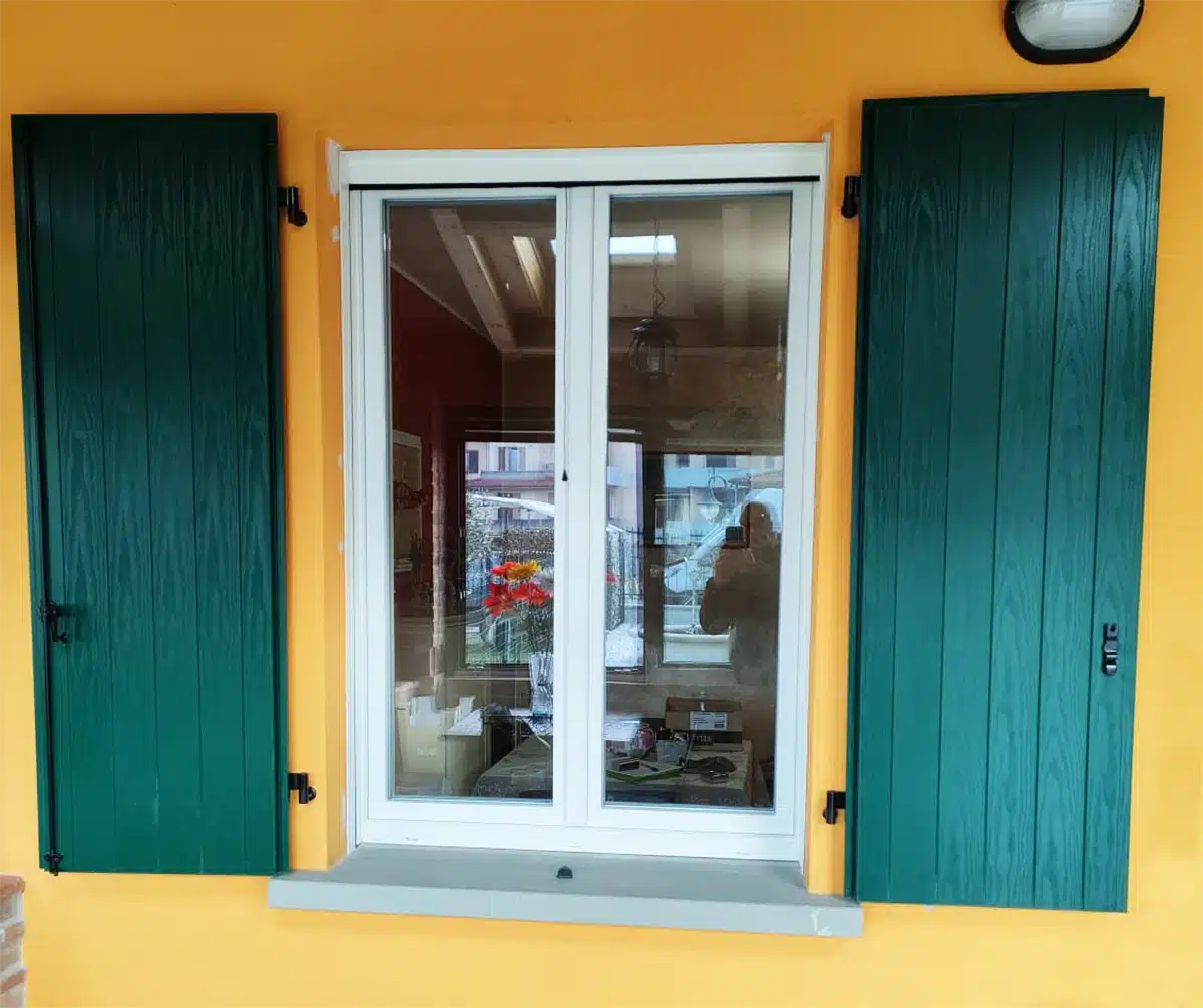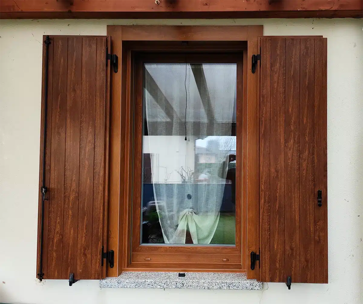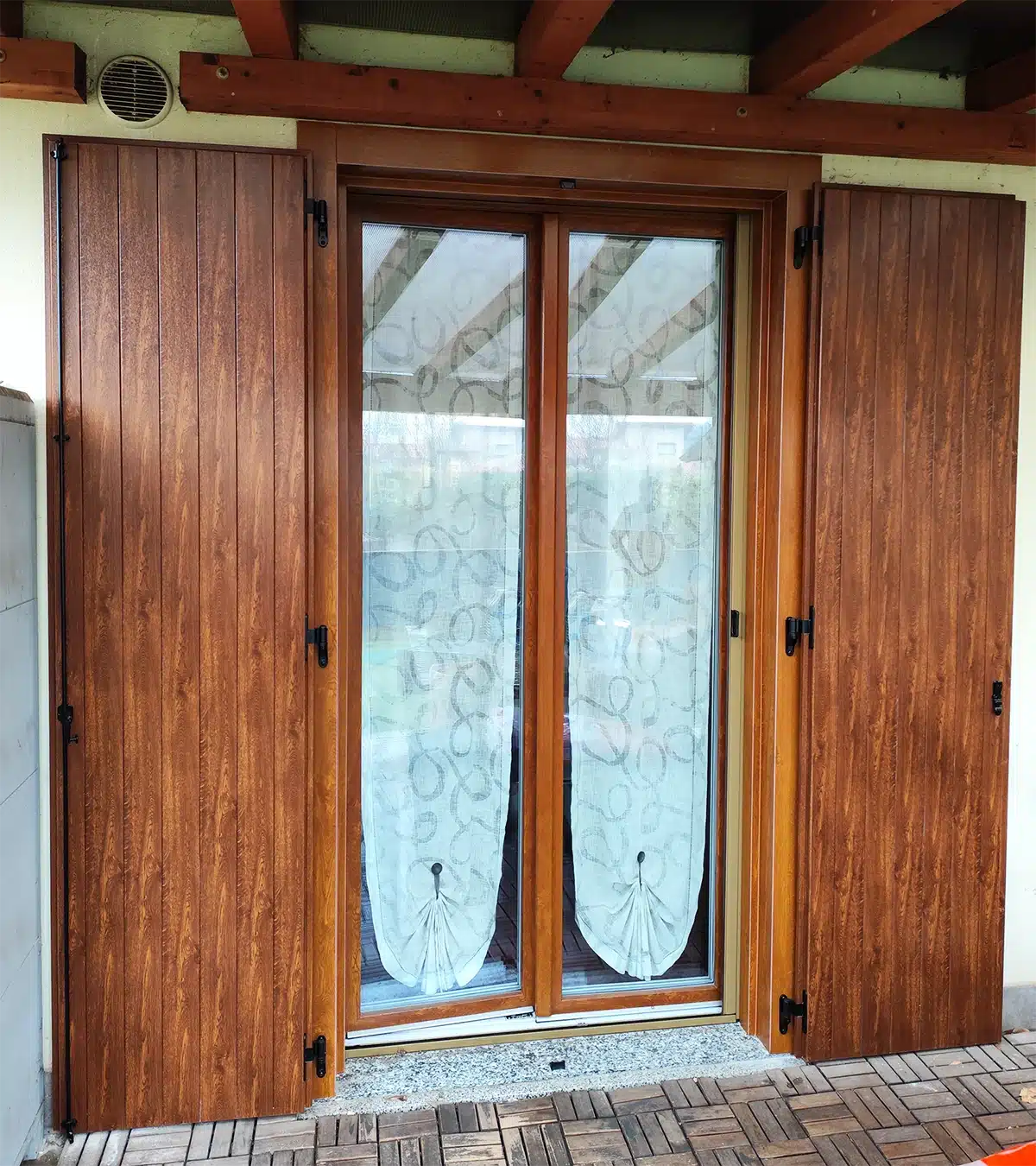 Gli scuri a doghe verticali con apertura alla padovana o vicentina sono diffusi in tutto il Triveneto e sono realizzati con eleganti doghe da 88 mm.